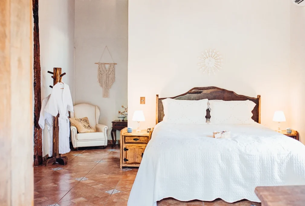Um convite para se sentir em casa, as acomodações acompanham a proposta da propriedade, com uma estética rústica que se integra de forma natural ao ambiente ao redor.