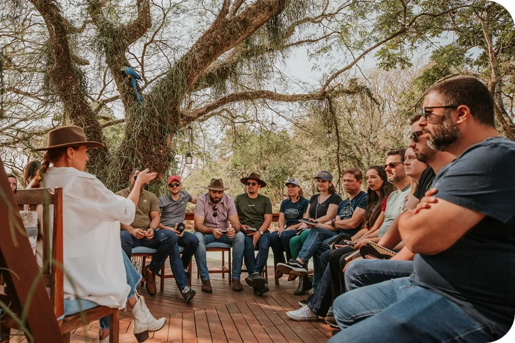 “O maior produto daqui é justamente as pessoas fazerem essa imersão. E toda atmosfera criada contribuiu muito para a gente vir por inteiro. Porque se você falasse assim: ”você vai pra um Team Building numa fazenda e vai aprender sobre cavalos”. Se fosse só isso talvez a gente não chegasse tão conectado e tão entregue. Eu me senti muito entregue desde o primeiro momento hoje, sabe? Mas porque a condução também proporcionou isso desde os vídeos. Tem muito conteúdo ali e muito conhecimento, não é só um aquecimento para o que a gente viveu aqui. Acho que faz muito sentido a gente poder também utilizar isso no futuro.”